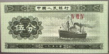 1953. Dark green on green underprint. Cargo ship at right. Arms at center on back. Roman control numerals only.