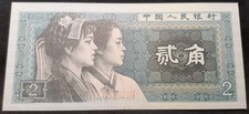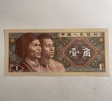 1980. Brown and dark brown on multicolored underprint. Two Taiwanese men at left. Arms at center on back. Serial number prefix two letters.