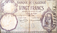 30.9.1938; 26.7.1939; 3.1.1942-4.2.1942. Blue-violet and multicolor. Girl at left, woman with torch and youth at right.Overprint: Black TUNISIE on Algeria p82.