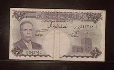 ND (1958). Green on multicolor underprint. Portrait Habib Bourguiba at left. Peasant and farm machine at right. Back: Dam. Watermark: Arms.