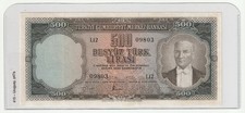 L.1930 (16.2.1959). Brown and multicolor. Portrait President Kemal Atat¸rk at right. Like p170, but without SERI in front of number. Different signature. Back: Byzantine hippodrome with mosque in Istanbul. Watermark: Kemal Atat¸rk. Printer: BWC. Specimen.