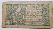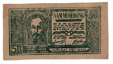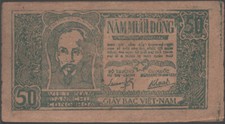 ND (1948-1949). Dark green. Portrait HCM at left. Back: Dark green on red-brown underprint. Woman, two children and two men at center. (Clear and blurred printing varieties, also serial Number sizes.) Without watermark.