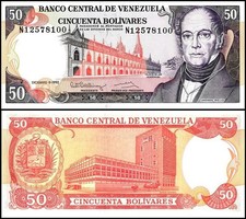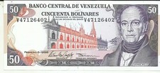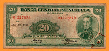 22.4.1954-11.3.1960. Black on multicolor underprint. Portrait Simon BolÃvar at left. Back: Orange. Arms at right. Printer: ABNC.