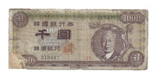 4290 (1957). Purple on brown and green underprint. Portrait Syngman Rhee at right. Back: Black on green underprint. Date at center.