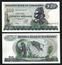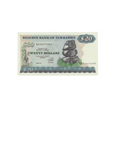1994. Blue, black and dark green on multicolor underprint. Giraffe at left. Chiremba balancing rock formation. Epworth (Harare) at center right. Signature varieties. Back: Elephant and Victoria Falls. Watermark: Zimbabwe bird.