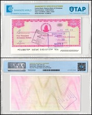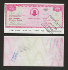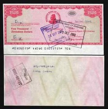 2003. Red. Reserve Bank of Zimbabwe logo. Back: Pink and green underprint. Wave pattern. Watermark: Zimbabwe bird. Type 1.