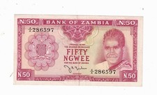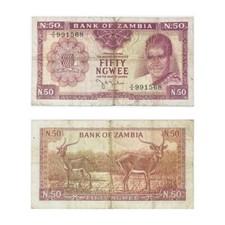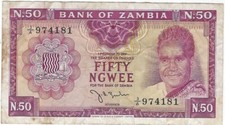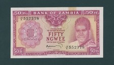ND (1968). Red-violet on multicolor underprint. President K. Kaunda at right, arms at left. Dot between letter and value. Back: Two antelope. Printer: TDLR. Specimen.