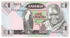 ND (1968). Dark brown on multicolor underprint. President K. Kaunda at right, arms at upper center. Dot between letter and value. Back: Farmers plowing with tractor and oxen. Watermark: Kaunda. Printer: TDLR. Specimen.