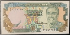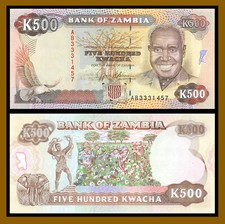 ND (1991). Brown on multicolor underprint. Older President K. Kaunda at right, fish eagle at left, tree over arms at center. Back: Elephant at left, workers picking cotton at center. Watermark: Older President K. Kaunda.