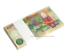 2006. Multicolor. Fish eagle at left, Baobab tree at center. Back: aardvark at left, sorghum farmers on tractor at center, 'Chainbreaker' statue at center right. UV Value in box and design elements fluoresce yellow; vertical serial number orange. Polymer plastic.