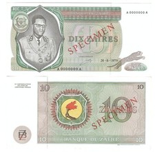 - Denomination & Currency:10 Zaires