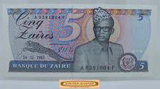 24.6.1985. Purple, blue and multicolor. Mobutu in civilian dress at center right, leopard at lower left facing left. Back: Blue and multicolor. Men fishing with stick nets at center. Watermark: Mobutu in civilian dress. Printer: G&D.