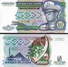 - Denomination & Currency:5000 Zaires