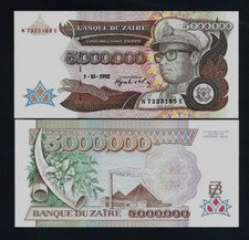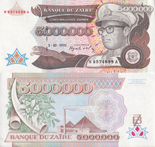 - Denomination & Currency:5000000 Zaires