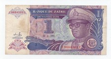 15.2.1994. Grayish purple and blue-violet on aqua and ochre underprint. Mobutu in military dress at right, arms at lower right, leopard at lower left center. Back: Suspension bridge at left center. Watermark: Mobutu. Printer: HdMZ.