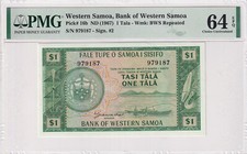 ND (1967). Brown on multicolor underprint. Tava bowl at left, red and blue flag over arms at right. Back: Shoreline with trees, sea and islands. Watermark: BWS repeated. 150 x 76mm.