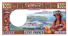 ND (1973). Brown on multicolored underprint. Girl wearing a wreath and playing guitar at right, overprint REPUBLIQUE FRANCAISE at lower center. Back: girl at left, harbor scene at center. Lithographed. Series beginning with H2, from number 51,000.