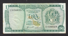 L.1967 (1973). Green on multicolor underprint. Arms at right, map at center, War Memorial at left. Back: PrehistoricTemple in Tarxien at left, old capital city of Medina at center. Watermark: Allegorical head of Malta. Printer: TDLR. Replacement notes: Serial number prefix X/1, Y/1 or Z/1 (by denomintation).