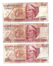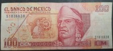 10.12.1992 (1994). Red and brown on multicolor underprint. Nezahualcóyotl at right, Aztec figure at center. Series A-V. Back: Xochipilli statue. Watermark: Nezahualcóyotl. Printer: BdM.