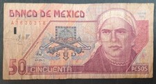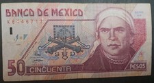 17.3.1998. Red-violet and black on multicolor underprint. J.M. Morelos at right, crossed cannons on outlined bow and arrow below his flag at left center. EL omitted from bank titile, NUEVOS and PAGAR¡ A LA VISTA AL PORTADOR are omitted Back: Butterflies at left, boat fishermen at center. Printer: BdM.