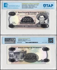 D.1987 (1987). 500,000 Córdobas on 1000 Córdobas. Dark gray on multicolor underprint. General A. C. Sandino at right. Back: Hut (Sandino's birthplace). Watermark: Sandino. Printer: TDLR. Lithographed. (Not issued).