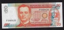 1986. Deep green and brown on multicolor underprint. Aguinaldo at left center, plaque with cannon at right, with commemorative text, seal and visit dates in watermark area. Prefix letters CA. Back: Aguinaldo's Independence Declaration of June 12, 1898. Watermark: Aguinaldo. Serial number above 20,000.