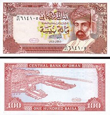 1994/AH1414. Purple on multicolor underprint. Sultan Qaboos bin Sa'id at right. Back: Rustaq Fort. Watermark: Sultan Qaboos bin Sa'id.