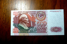 1992. Red, violet and dark green on multicolor underprint. Portrait of V. I. Lenin at upper left, arms at upper center. Back: View of Kremlin with guilloche in watermark area. Watermark: Stars.