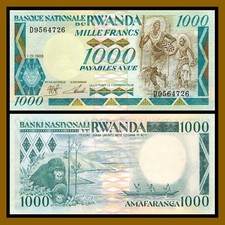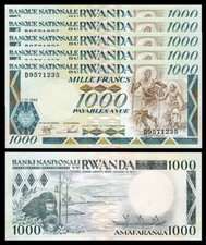 1.1.1988; 24.4.1989. Green, brown and multicolor. Two Watusi warriors at right. Signature titles: 2E VICE-GOUVERNEUR and GOUVERNEUR. Back: Two Eastern Gorillas at left, canoe in lake at right. New spelling AMAFARANGA.