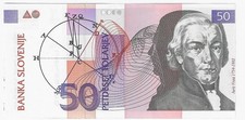 15.1.1992. Black, purple and brown-orange on multicolor underprint. J. Vega at right, geometric design and calculations at left center. Back: Academy at upper left, planets and geometric design at center. Watermark: J. Vega. Replacement notes: Serial number prefix AZ and possibly others.