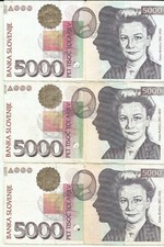 8.10.1997. Brownish black, dark brown and brown-orange on multicolor underprint. Like number 19 but with scalloped kinegram with cameo portrait and value. Back: National Gallery in Ljubljana at upper left. Watermark: I. Kobilika. Kinegram 5000 horizontal.