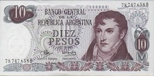 Ley 18.188. General Manuel Belgrano at right. Printer: CMN. Many signature varieties. Without colored threads in white or grayish tint paper. Watermark varieties.