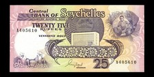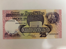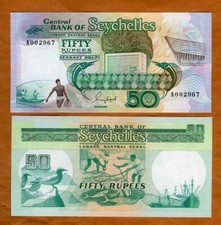 ND (1989). Purple on multicolor underprint. Two men with coconuts at lower left, boy near palms at upper right, bank at center, flying fish at left and center right. Back: Primitive ox-drawn farm equipment. Watermark: Black parrot's head.