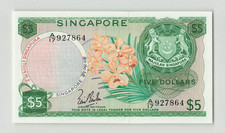 ND (1967). Red on multicolor underprint. Lilac flowers (Dendrobium Marjorie Orchid) at center, arms at lower right. Back: Four hands clasping wrists over map of Singapore at left center. Watermark: Lion's head. Printer: TDLR. Without red seal.