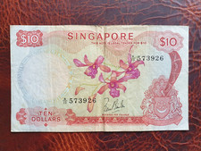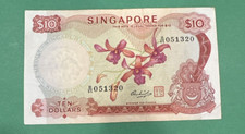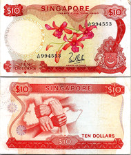 ND (1973). Red on multicolor underprint. Lilac flowers (Dendrobium Marjorie Orchid) at center, arms at lower right. Back: Four hands clasping wrists over map of Singapore at left center. Watermark: Lion's head. Printer: TDLR. Red signature seal Type II at center.