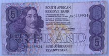 ND (1990-1994). Purple on multicolor underprint. Jan van Riebeek at left, first lines of bank name and value in English, diamond at center. Back: Grain storage at left center. Watermark: Jan van Riebeek. 127 x 63mm.
