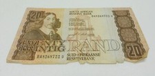 ND (1982-1985). Brown on multicolor underprint. Jan van Riebeek at left, building in underprint at center. Back: Three sailing ships at left center with arms at right. Watermark: Jan van Riebeek. 144 x 77mm. Fractional numbering system. With security thread.