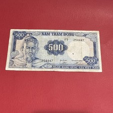 ND (1962). Green-blue on gold and pinkish underprint. Dragon at left, palace-like building at left center. Back: Farmer with two water buffalos at right. Watermark: Ngo Dinh Diem. Specimen. GIAY MAU.