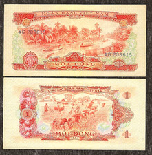 1966 (1975). Red-orange on multicolor underprint. Boats on canal at center. Back: Workers in field.