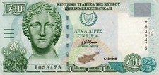 1.12.1998. Olive-green and blue-green on multicolored underprint. Marble head of Artemis at left, arms at upper center. Ruppell's warbler, green turtle, butterfly, moutton, tulip, and cyclamen plants on back. Watermark: bust of Aphrodite. Wide security foil. Printer: F-CO (without imprint).