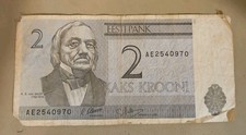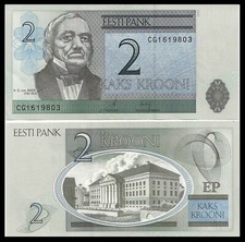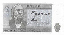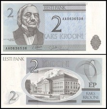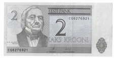 1992. Black on light blue-violet and grayish green underprint. K. E. von Baer at left. Tartu University building at center on back. Watermark: fortress.