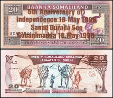 18.5.1996 (- old date 1994). 20 Shillings = 20 Shilin. Brown and red-brown on multicolor underprint. Overprint on number 3a. Back: Traders with camels.