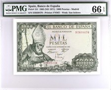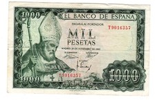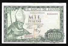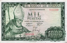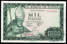 19.11.1965 (1971). Green on multicolor underprint. San Isidoro at left. Back: Imaginary figure with basilica behind. Watermark: San Isidoro. Printer: FNMT.