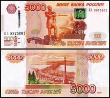 ND (1996). 50 Shamil = 5000 Rubles. Kazan Kremlin (ca. 16th century) with English and Russian text "Tatarstan" in frame below. Back: Women from national epic. Watermark: Light lines. 135 x 65mm. dark blue on pale blue-gray underprint.