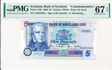 13.9.1996. Dark blue and purple on multicolor underprint. Sir W. Scott at left, bank arms at center. Back: Bank head office building at lower left, medallion of Pallas seated, arms and medallion of sailing s Watermark: Sir W. Scott. Printer: TDLR (without imprint).