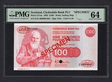 8.4.1985. Red on multicolor underprint. Lord Kelvin at left. Back: Kelvin's lecture room at Glasgow University. Watermark: Old sailing ship repeated vertically. 163 x 90mm. Signature title: CHIEF GENERAL MANAGER.