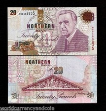 1.9.1999. Purple and dark brown on multicolored underprint. H. Ferguson at right and as watermark, farm tractor at lower left. City Hall in Belfast at center, buildings and architectural drawings in underprint on back.