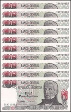 1983-1984. Black and red on green and multicolored underprint. Waterfalls at Iguazu at center on back. SERIE A, B. 2 Signature varieties. White or grayish tint paper.