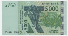 West African States p308Ce: 5000 Francs from 1989