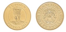 ND (2008). Green on multicolored underprint. King Tupou V at right. Back: whale.